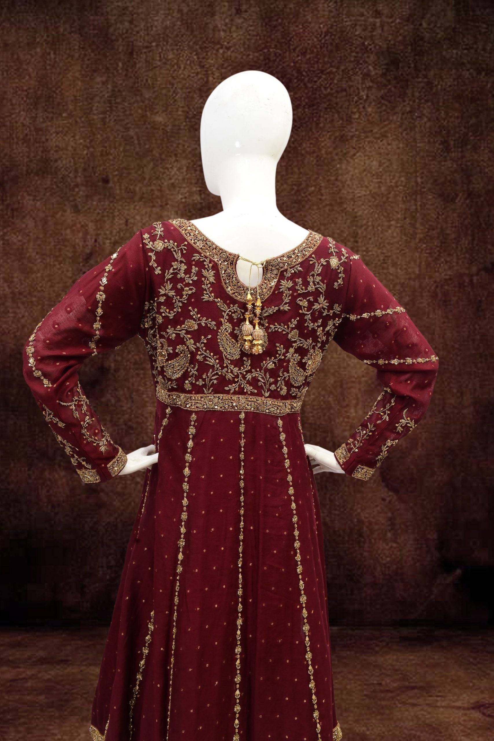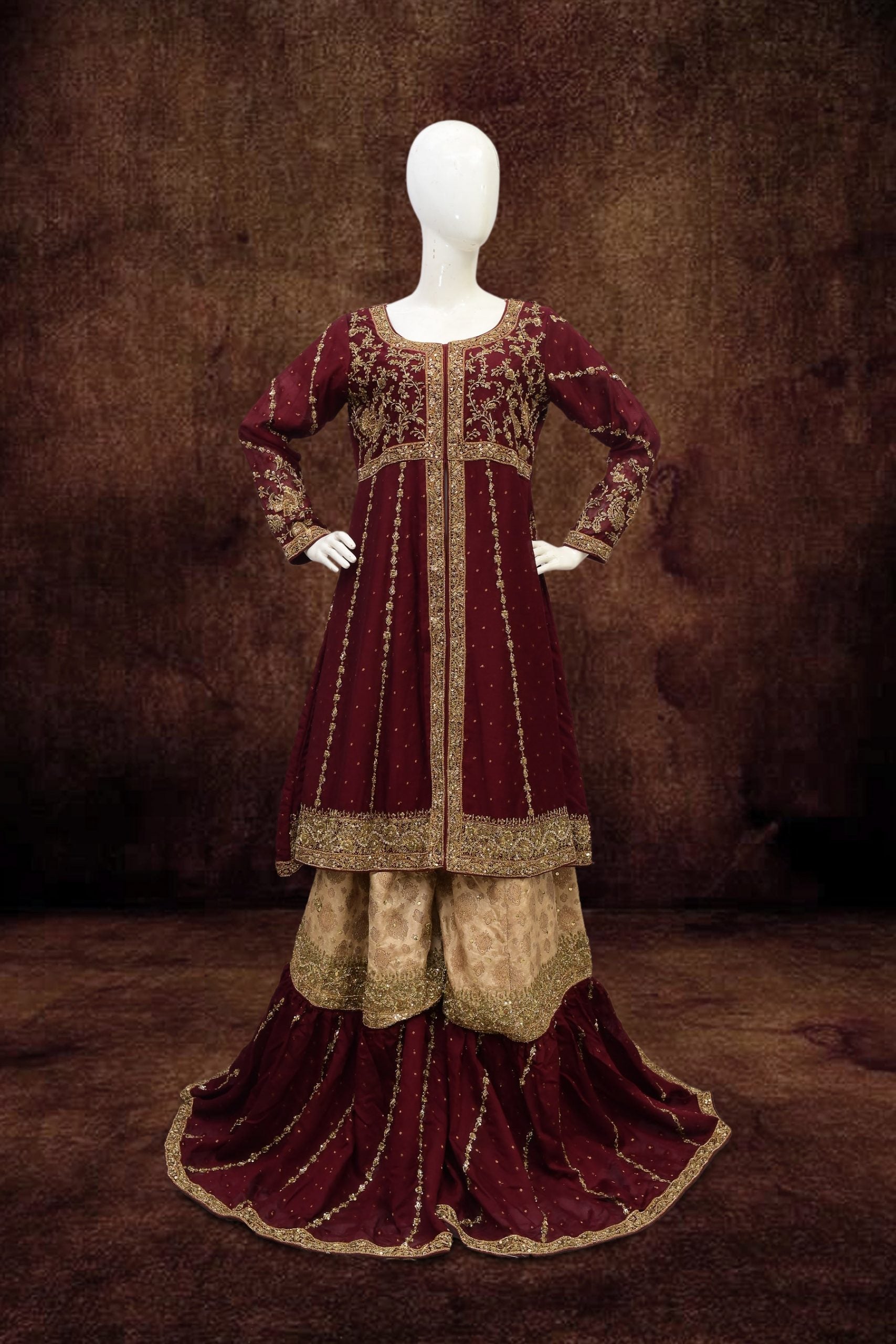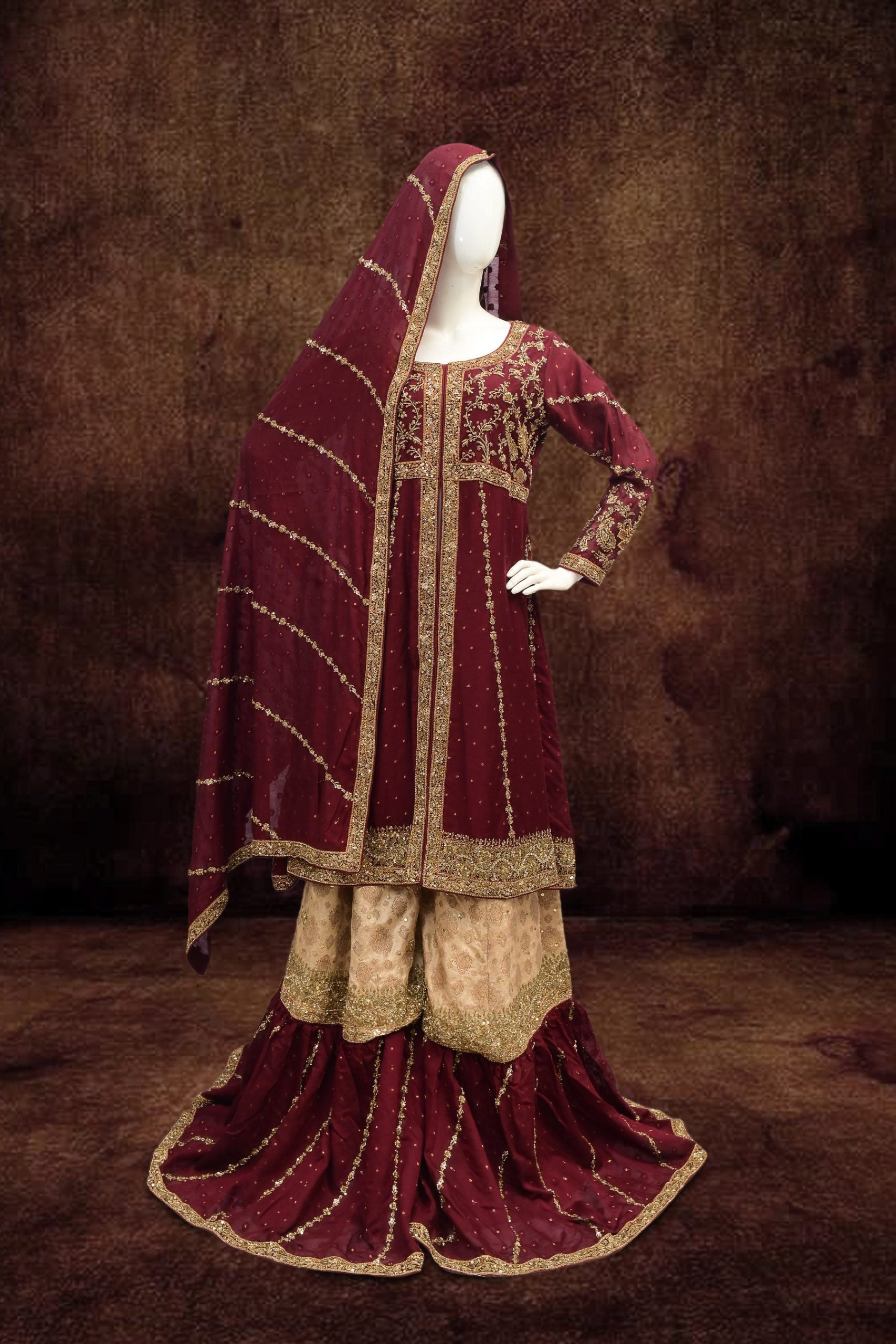 BQ-20: Elevate Your Wedding Couture with Maroon and Gold Elegance