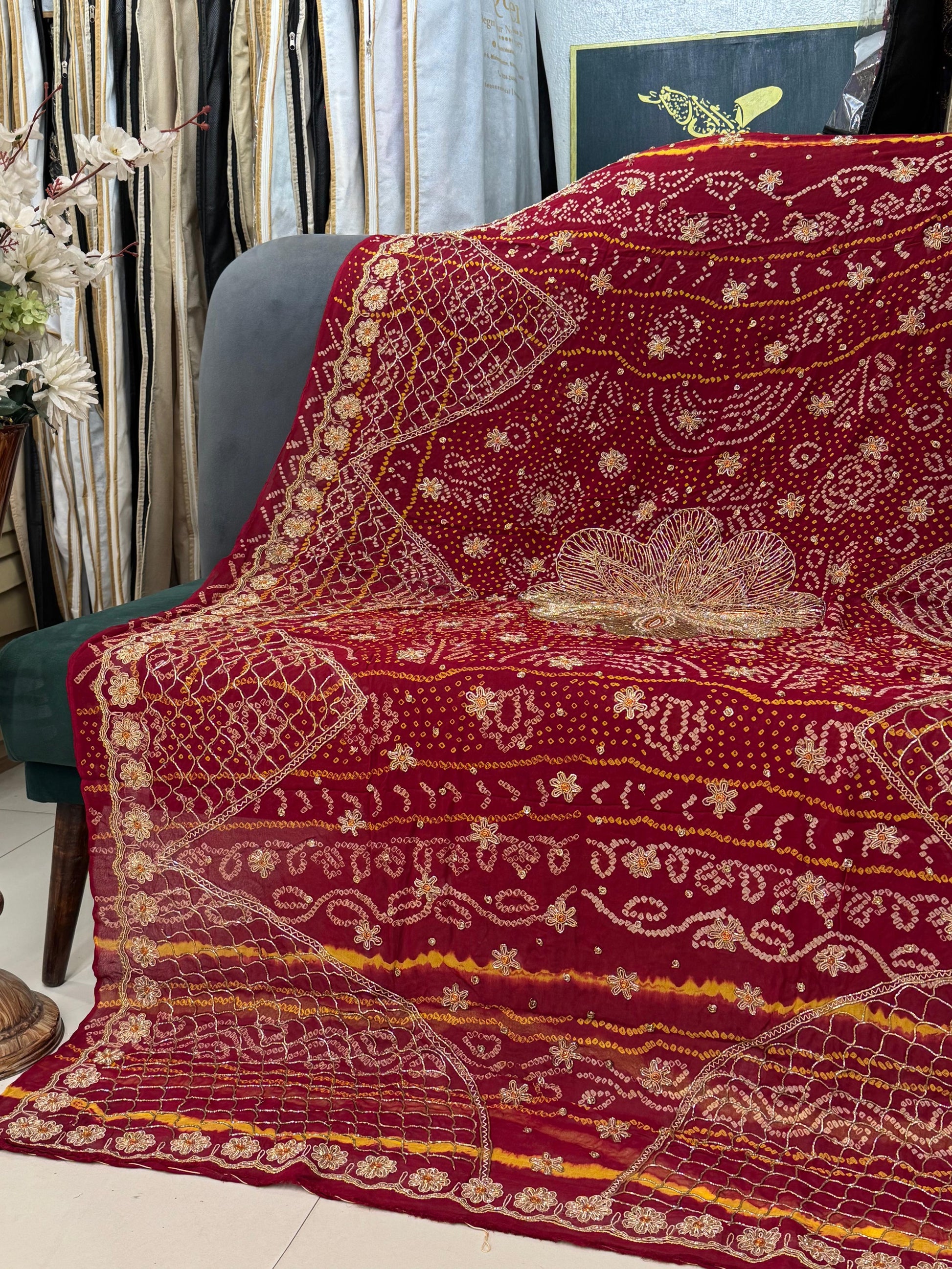 Royal Khombi Dupatta – Handcrafted Chundri Bandhani Masterpiece