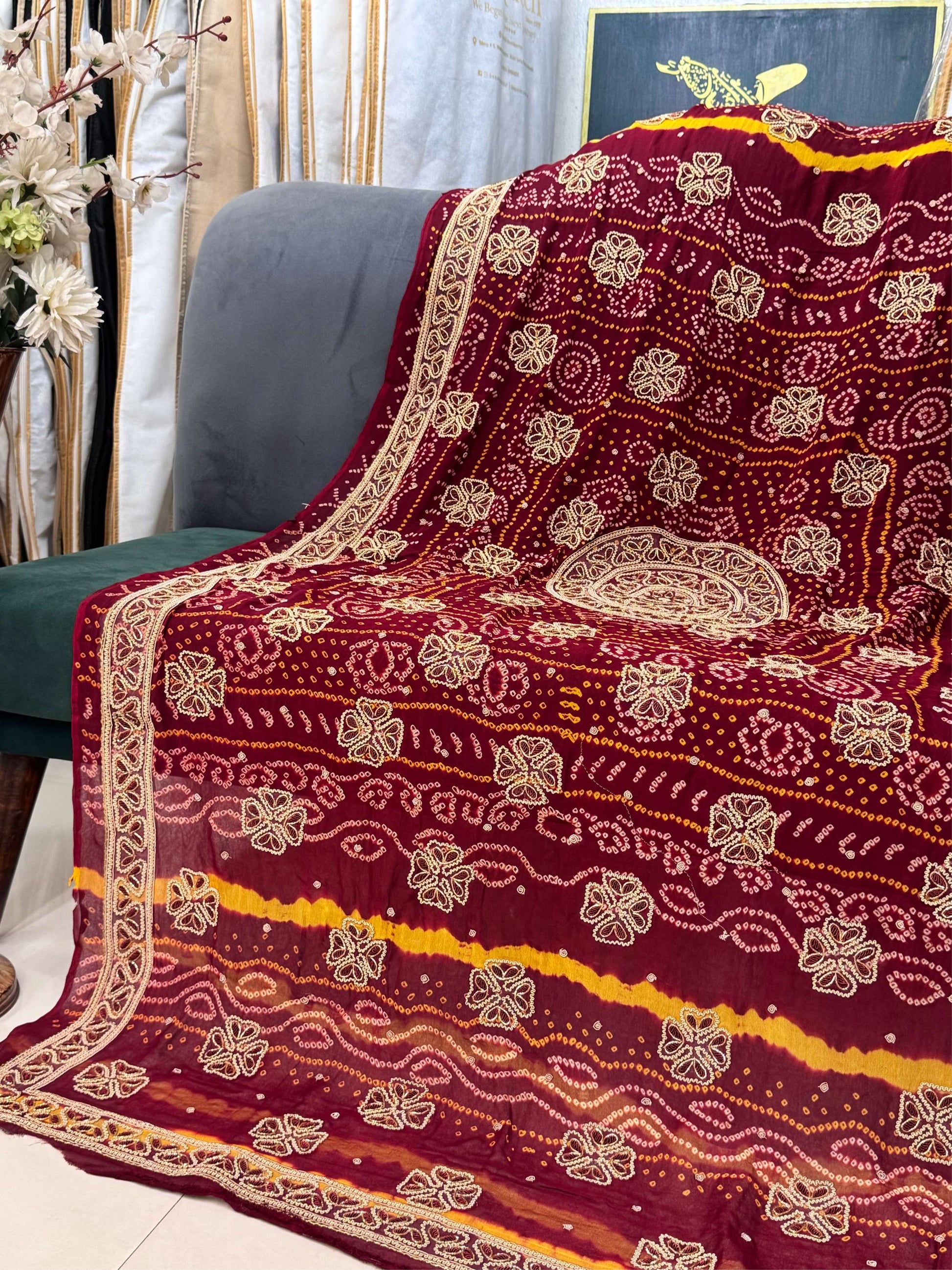 Royal Khombi Dupatta – Handcrafted Chundri Bandhani Masterpiece