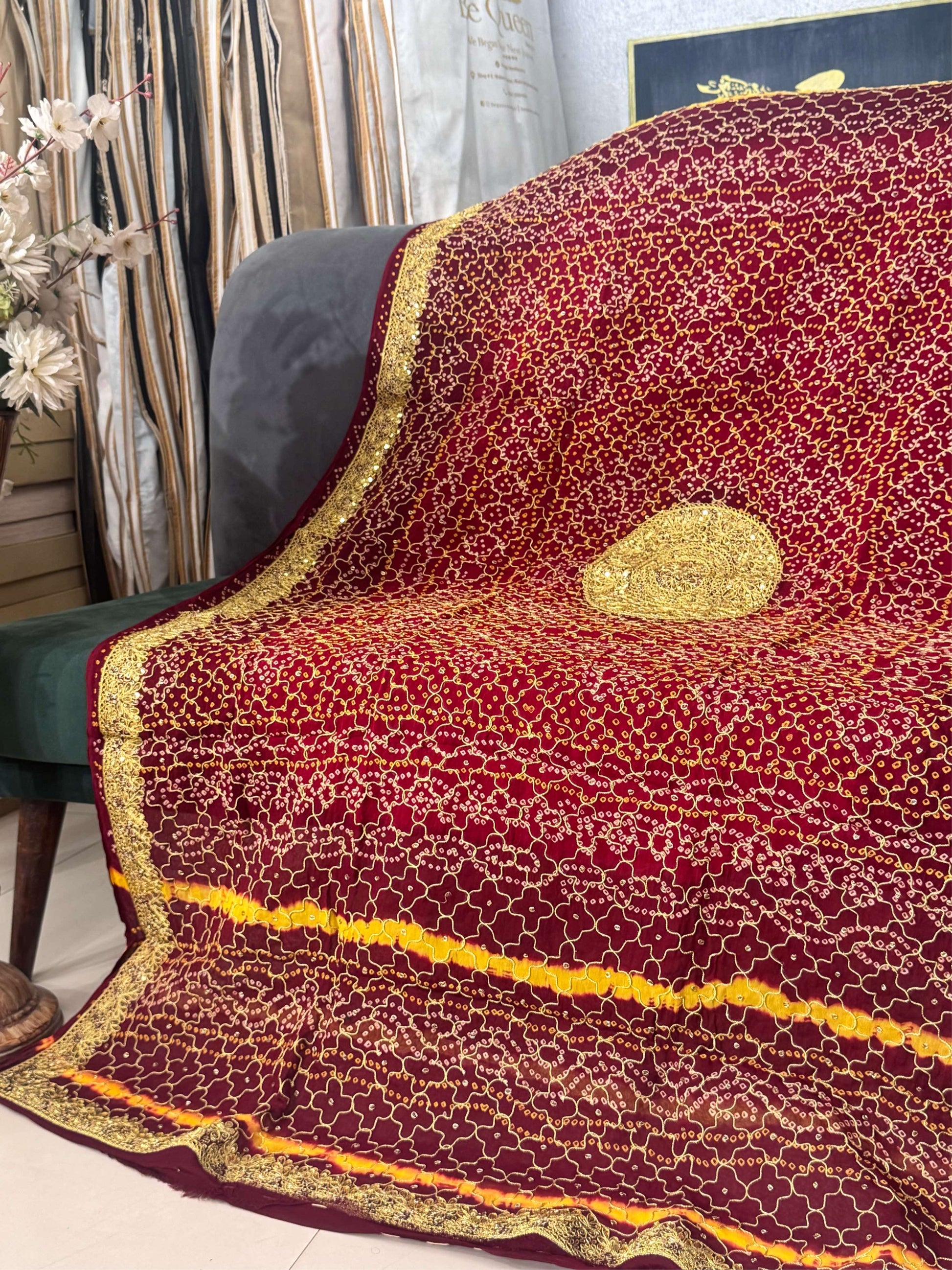 - Authentic Chundri dyeing with exquisite Marori hand embroidery