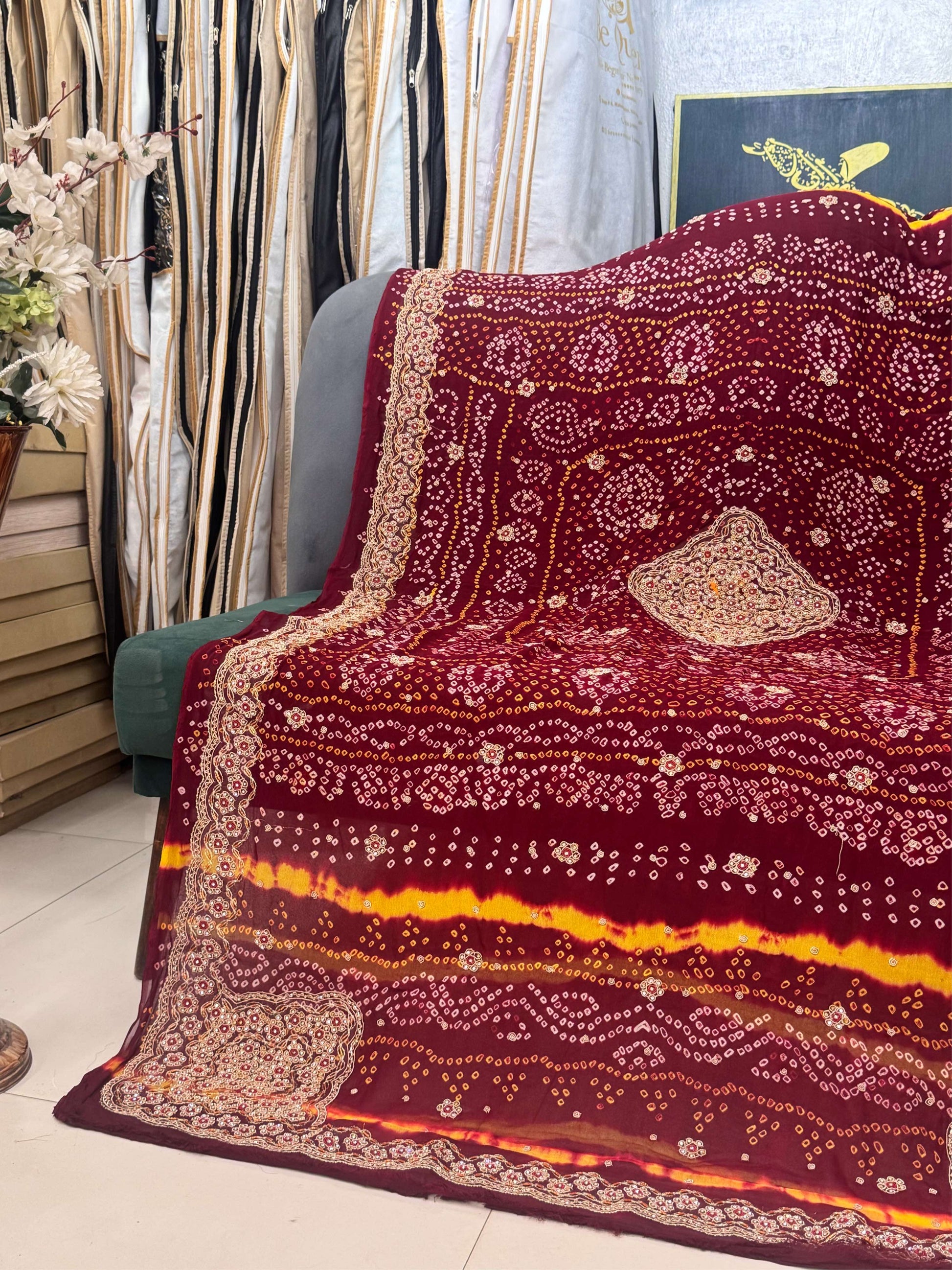 - Authentic handmade Chundri Bandhani craftsmanship