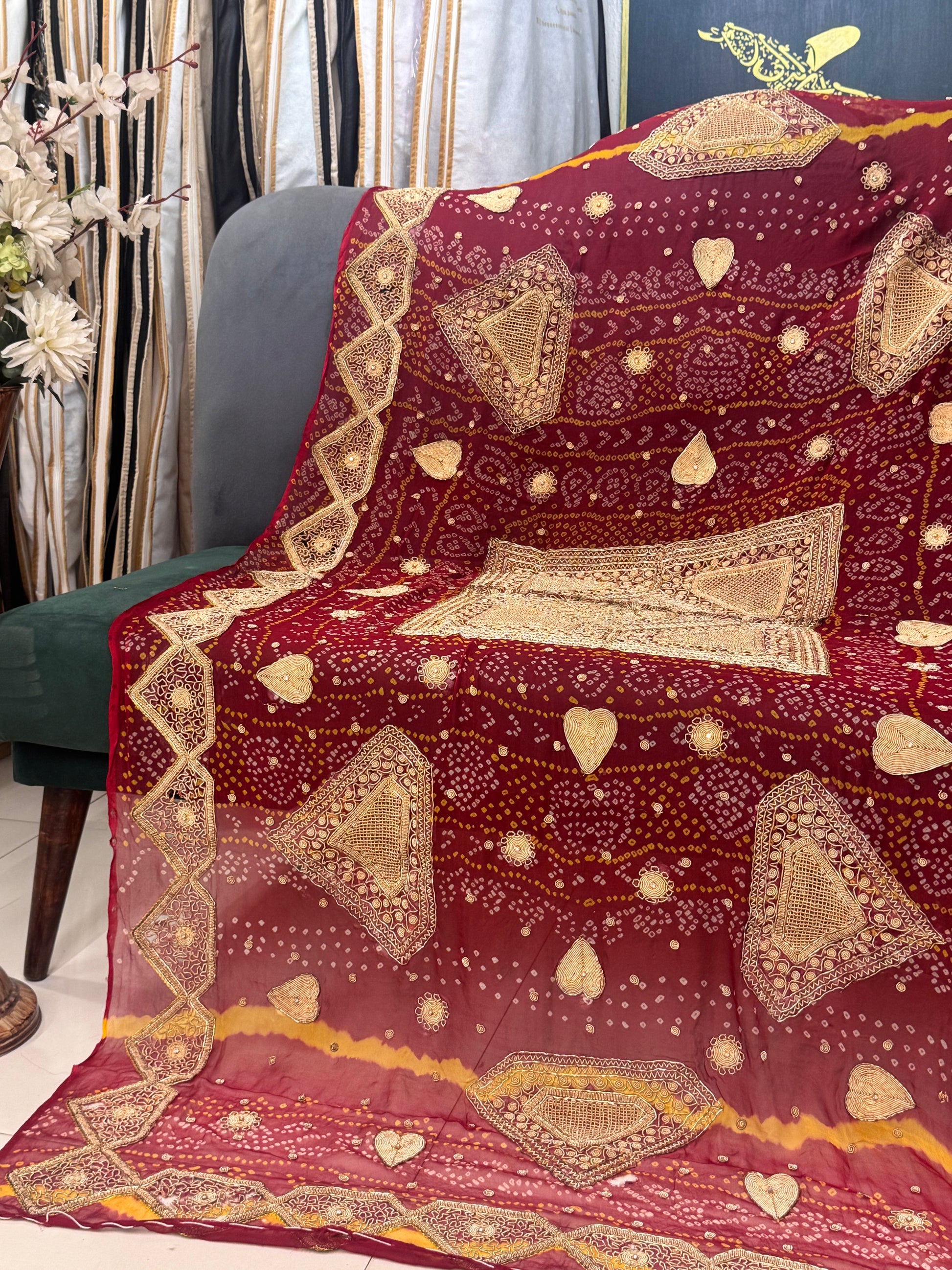Royal Khombi Dupatta – Handcrafted Chundri Bandhani Masterpiece